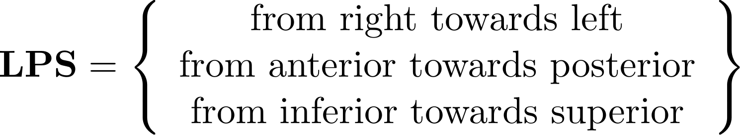 In this system, the x-axis points towards the left patient-side, the y-axis towards the posterior direction, and the z-axis towards the superior direction (see image below).